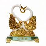 หงส์คู่รัก สีทองฐานแก้ว ถือเป็นของขวัญมงคลสำหรับงานแต่งงาน งานมงคลสมรส เพื่อแสดงความอวยพรให้กับคู่บ่าวสาว ให้ครองรักกันยั่งยืนนาน มีความรักแบบไม่มีวันพลัดพราก ช่วยเสริมดวงคู่ชีวิตให้มีความมั่นคง ทำจากเรซิ่น ฐานเป็นแก้วคริสตัล